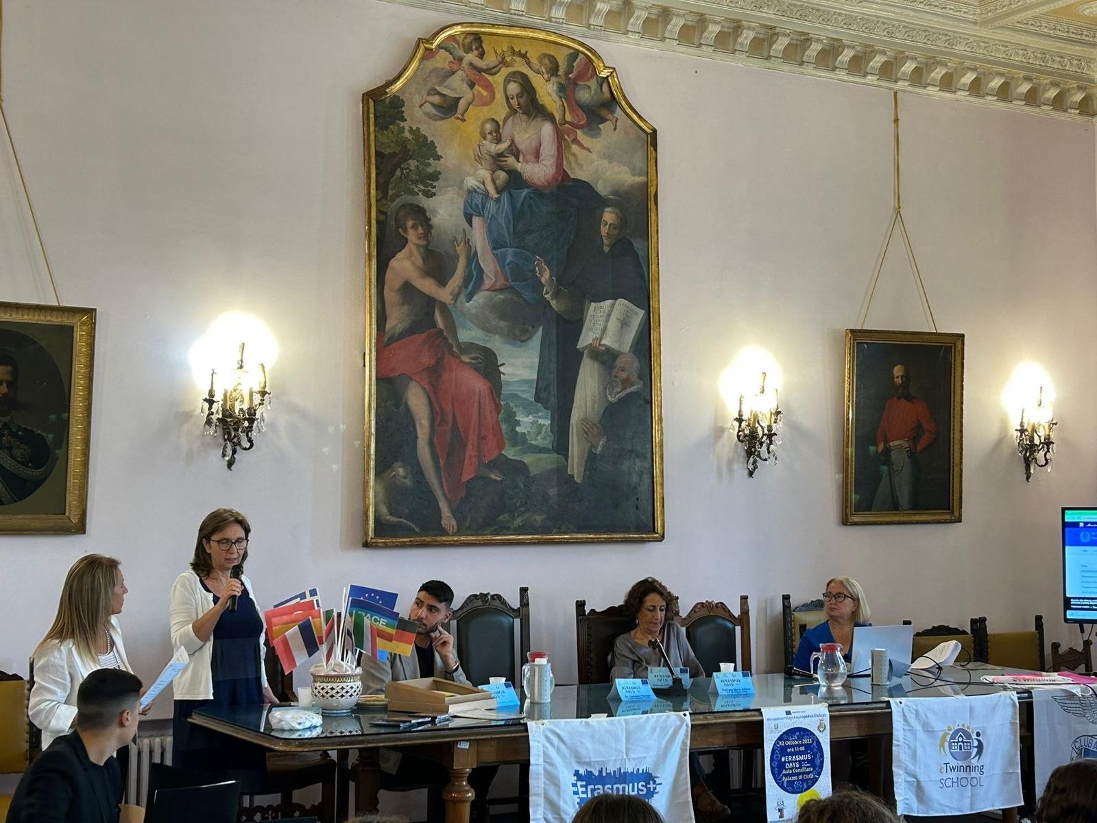 Accolti dalla dirigente scolastica, Maria Alfano, dal sindaco Vincenzo Servalli e dall'assessore all'Istruzione, Lorena Iuliano, si confronteranno, in presenza e a distanza, sul tema: Monica Faggionato, Direttore Ufficio Terzo della Direzione Generale per gli Affari Internazionali e l'internazionalizzazione, i Professori Tomas Garcia Mas e Liborio Perez Lopez, IES La Asuncion, Elche, la Prof.ssa Aurelia Codrescu, coordinatrice Erasmus - Liceul Teoretic Sfanta Maria.