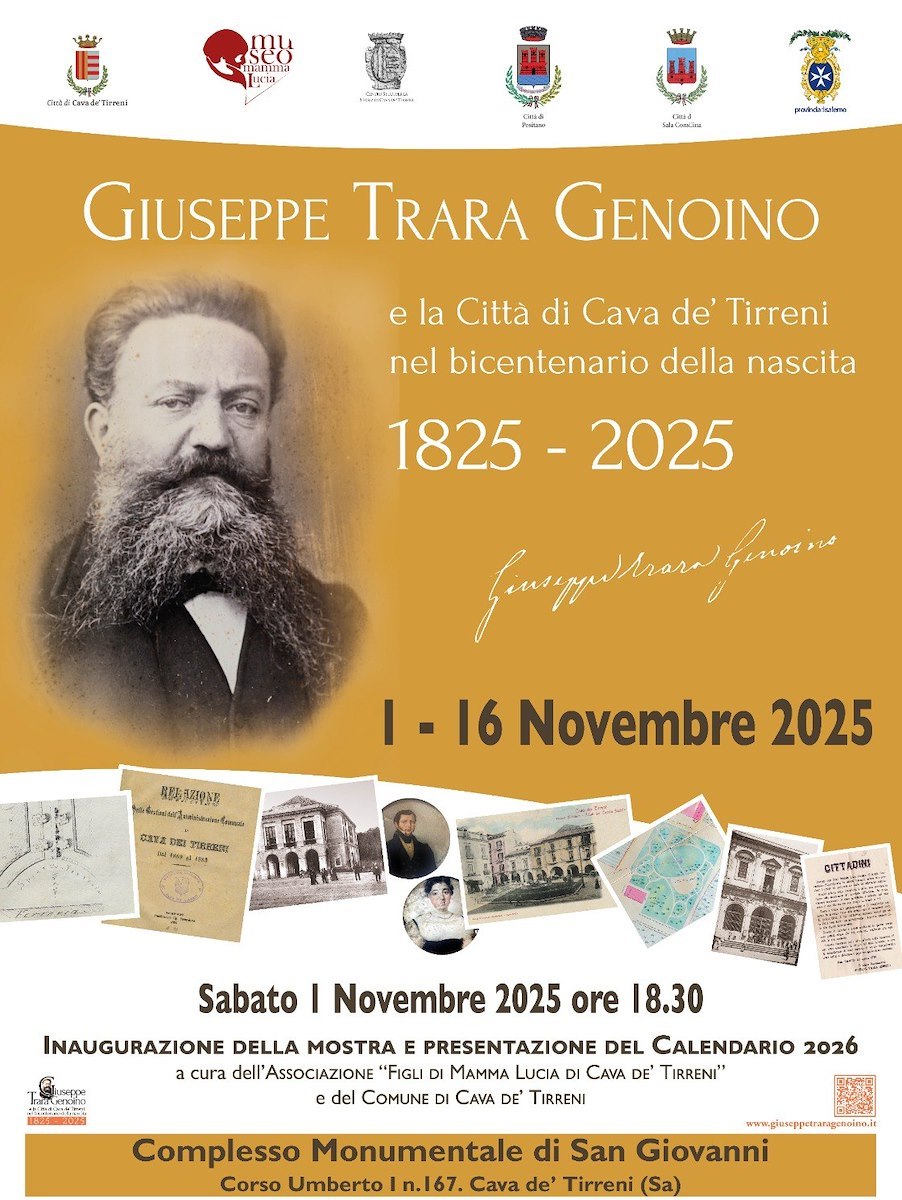 Nell'ambito delle celebrazioni per il bicentenario della nascita del sindaco di Cava de' Tirreni Giuseppe Trara Genoino, sabato 1° novembre alle ore 18.30 presso il Complesso Monumentale di San Giovanni, in corso Umberto I n.167, verrà inaugurata la mostra "Giuseppe Trara Genoino e la città di Cava de' Tirreni nel bicentenario della nascita. 1825-2025".