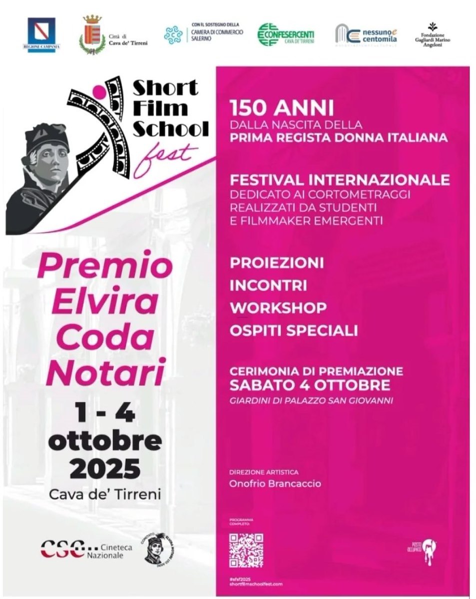 Lo Short Film School Fest - Premio Elvira Coda Notari, rappresenta un appuntamento di rilievo per la città e per la Campania, non solo come vetrina culturale, ma come laboratorio di crescita e confronto per le nuove generazioni. La rassegna rende omaggio a Elvira Coda Notari, prima regista donna in Italia, per i 150 anni dalla sua nascita, attraverso proiezioni, laboratori e incontri.